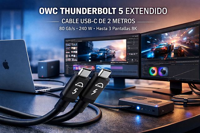 OWC lanza un cable Thunderbolt 5 USB-C de 2 m que mantiene velocidad, energía y video extremo para flujos profesionales exigentes.
