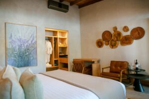 Mientras tanto, Casa Olivea mantiene una personalidad más íntima y reservada que seduce desde la sencillez refinada. Rodeada de olivos y viñedos, propone una hospitalidad cercana donde el diseño contemporáneo dialoga con materiales nobles y texturas que evocan la tierra. Aquí las mañanas comienzan con café artesanal y pan recién horneado, mientras las tardes se deslizan entre vino mexicano y atardeceres memorables en terrazas privadas. Casa Olivea confirma que el lujo auténtico reside en el detalle y en la calidez de una experiencia personalizada.